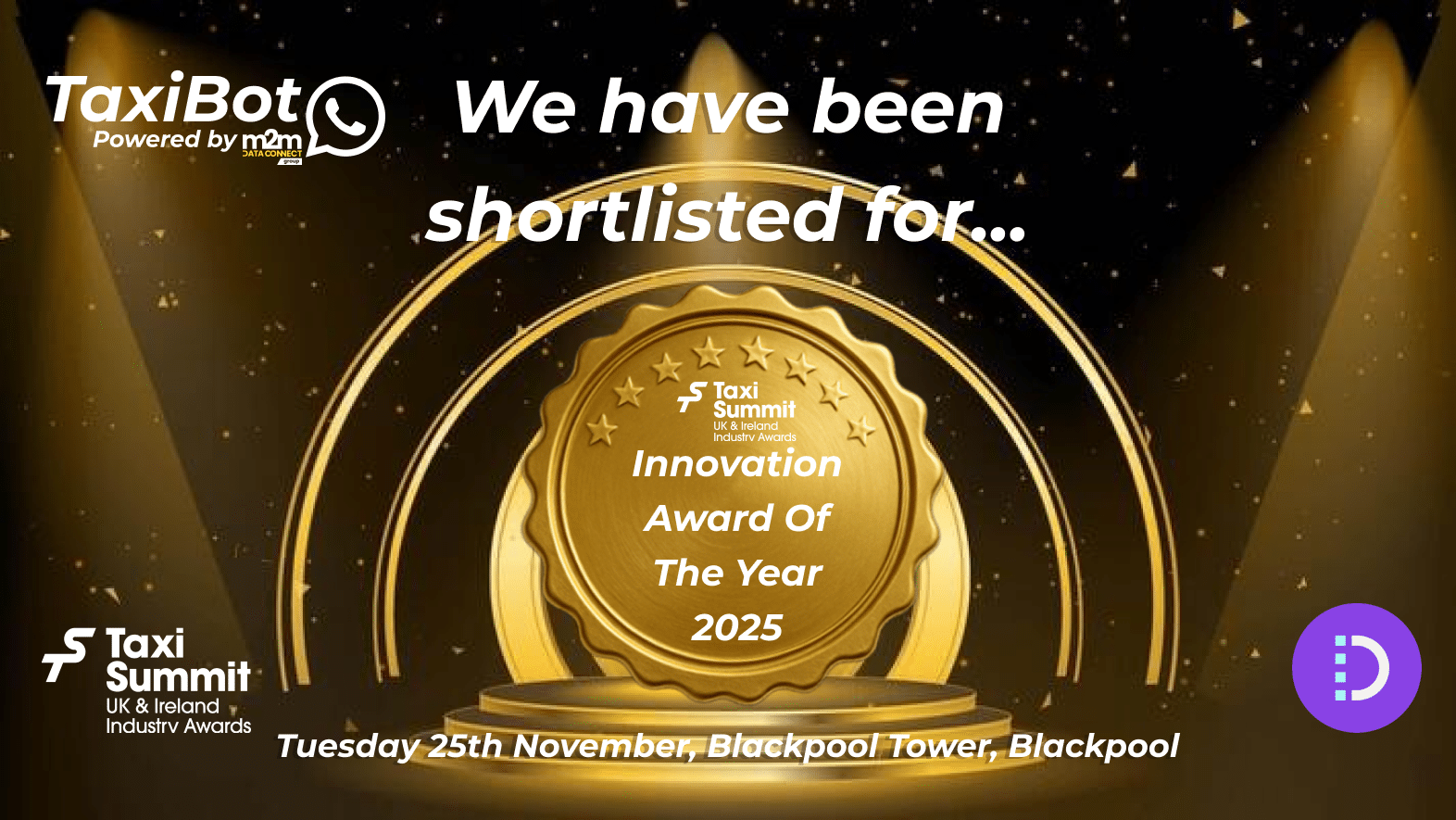 M2M Data Connect is proud to celebrate the nomination of M2M TaxiBot for the Innovation Award at the Taxi Summit in Blackpool on 19 October.